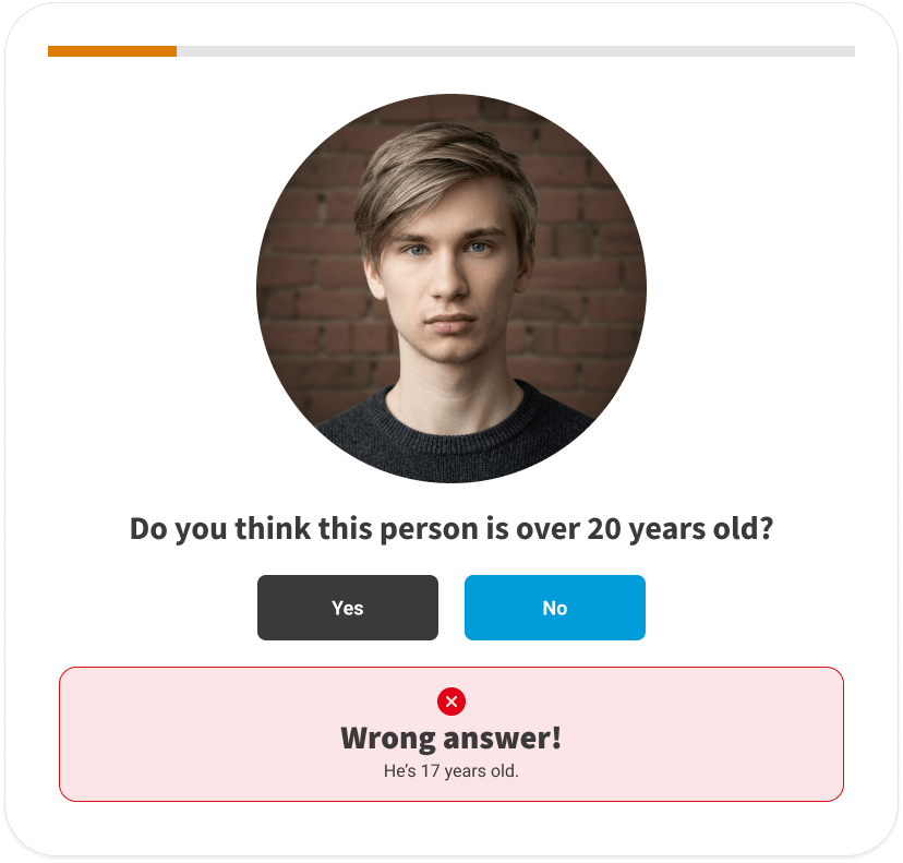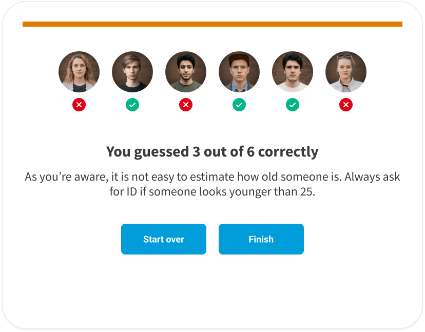 An interactive age-guessing exercise that proves to your retail staff just how difficult it is to verify a customer's age by appearance alone — and why asking for ID is non-negotiable.