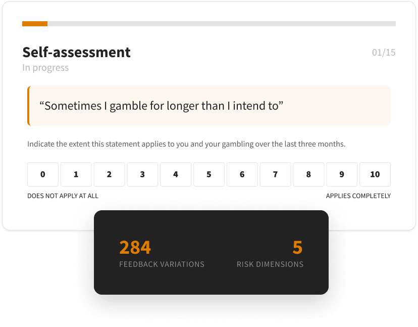 By answering 15 brief questions about their gambling habits, players receive personalised feedback and a clear overview highlighting any areas of increased risk, followed by tailored and actionable recommendations for maintaining healthy gambling habits.